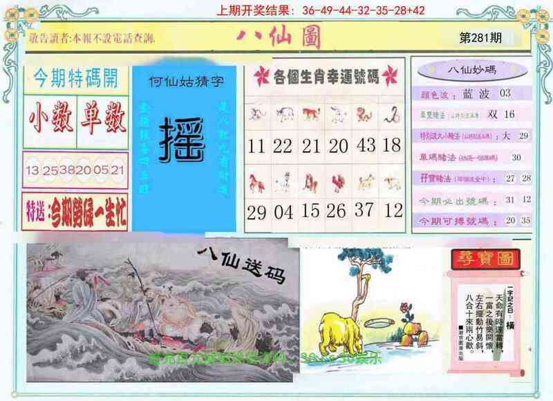 281期(澳门醉八仙殺肖)《鸡肖》 |