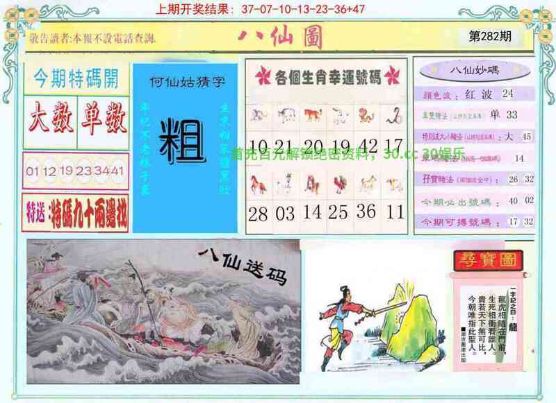 282期(澳门醉八仙殺肖)《狗肖》 |